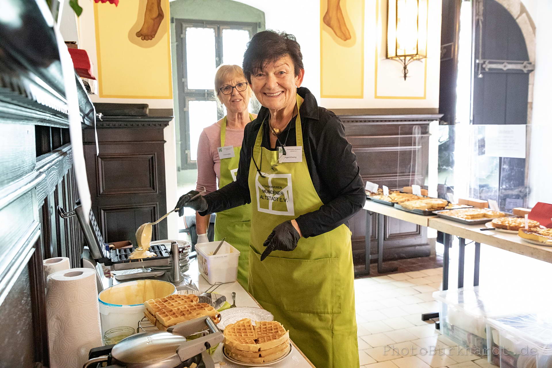 Zahlreiche Besucher – sowohl „Einheimische“ als auch Gäste Mündens – informierten sich und nutzten die Gelegenheit zu einer Führung im Rathaus. Davor und danach ging es für viele an den Stand des Fördervereins, auf zu Kaffee, Kuchen oder Waffeln.